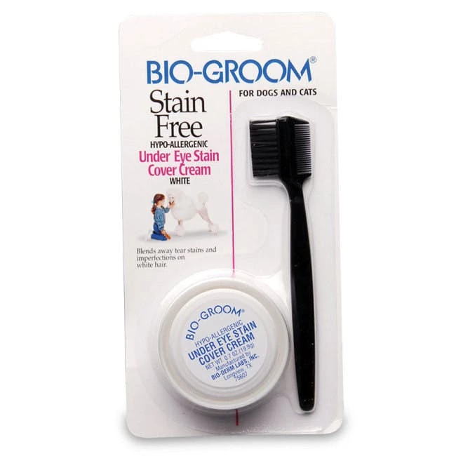 - Stain Free Under Eye Cover Cream is specially formulated to blend away tear stains and imperfections on white hair