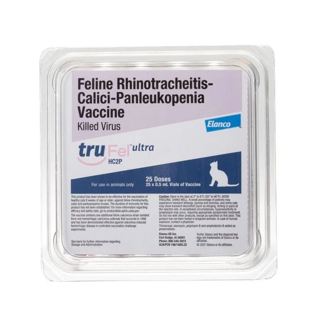 TruFel™ Ultra HC2P (Ultra Fel-O-Vax FVRCP) has been shown to be effective for vaccination against feline rhinotracheitis, calicivirus (novel), calicivirus (traditional) and panleukopenia viruses.