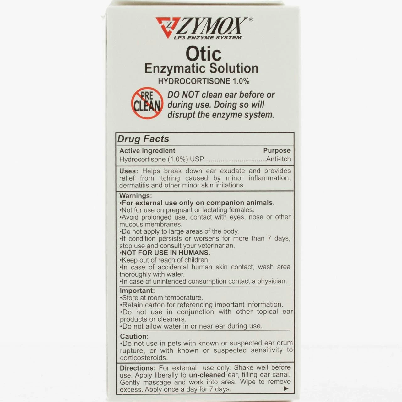 Important: Do not clean ears before or during treatment. Do not use in conjunction with other topical ear medications or cleaners. Do not allow water in or near ear during treatment. If condition persists or worsens, consult your veterinarian.